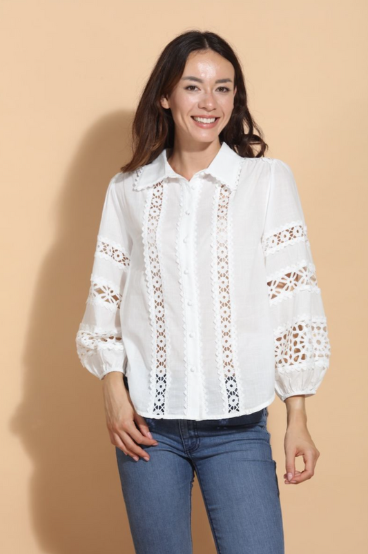 COTTON BLOUSE W/ LACE INSET 162