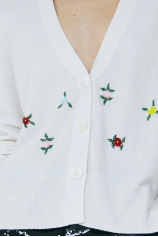 HAND BEADED DIAMOND & FLOWER V NECK R13591