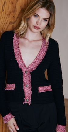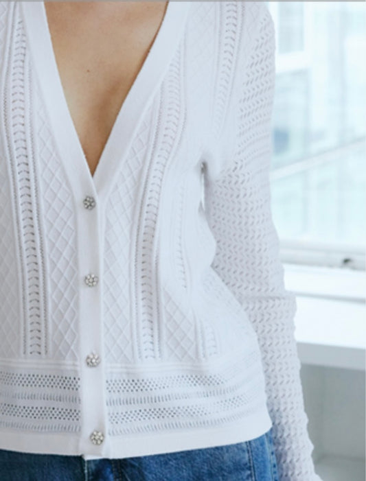 FRINGE MIXED STITCH CARDIGAN NHT14338