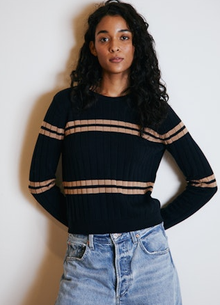 CHUNKY CREW W/ STRIPE SLEEVE NHT10830