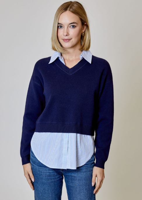 V NECK SWEATER W/ BLOUSE BQY0212012