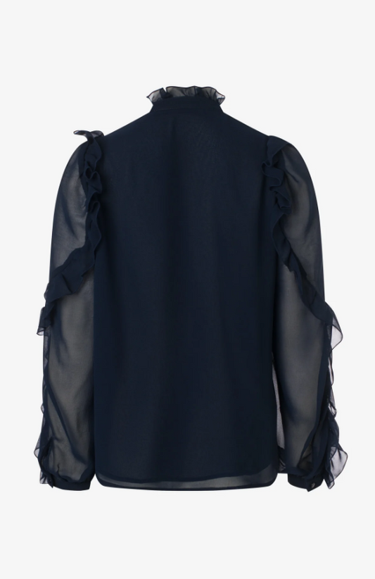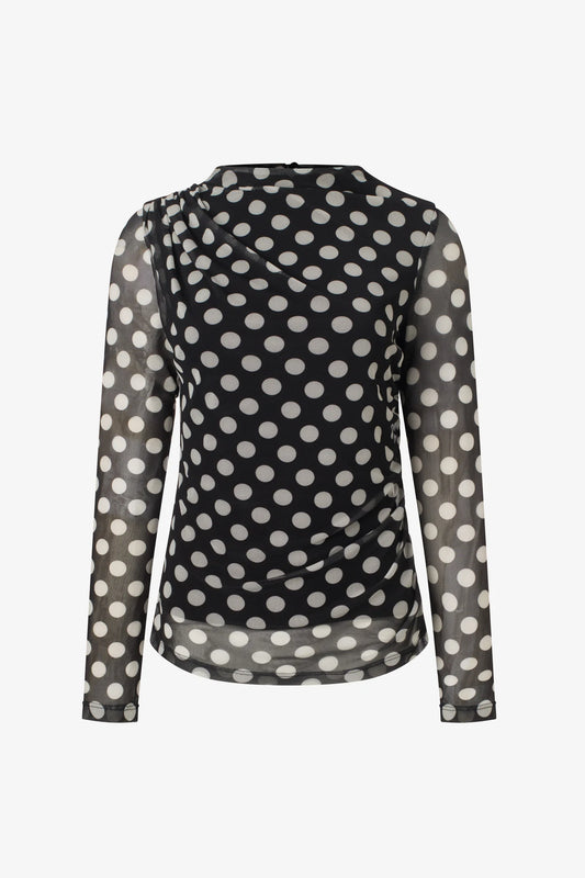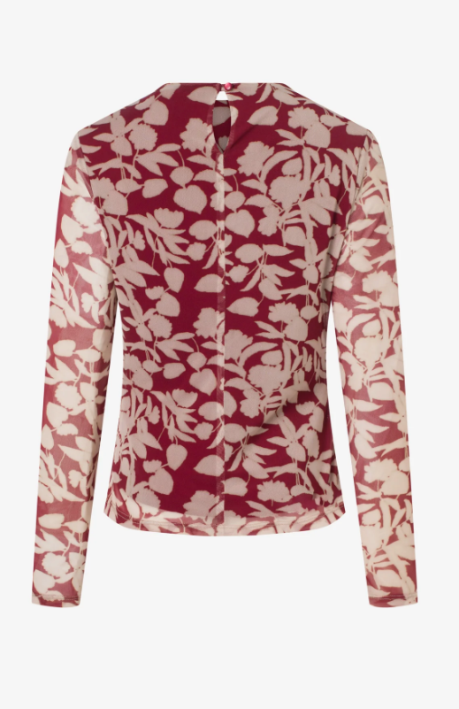 PRINTED MESH SHIRRED LONG SLEEVE F25MH2014