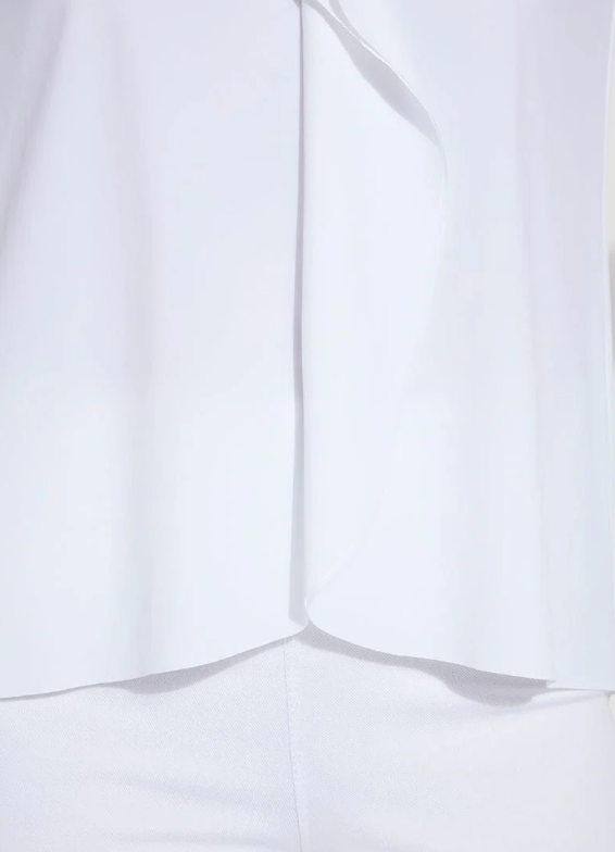The Alessia Flowy Pullover Top, made from 4-way stretch Microfiber, offers a front flounce with raw edge, dropped shoulders with small cuffs, a V-neck with collar band and raw-edge bottom. True to size, the versatile Alessia Flowy Pullover Top can be tucked into bootcut or wide-leg pants or worn over leggings.