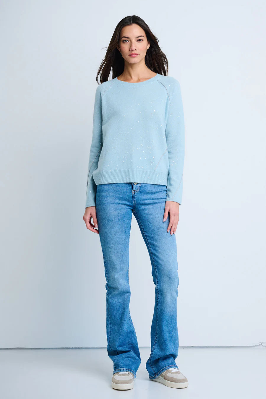 An everyday staple with a modern twist, the Around Town sweater is crafted from a soft Cotton-Cashmere blend and features a waffle stitch texture with contrast seam and cuff detailing. Its colorblock back and drop shoulders create visual interest and relaxed appeal. Finished with ribbed edges for a clean fit.