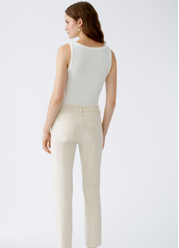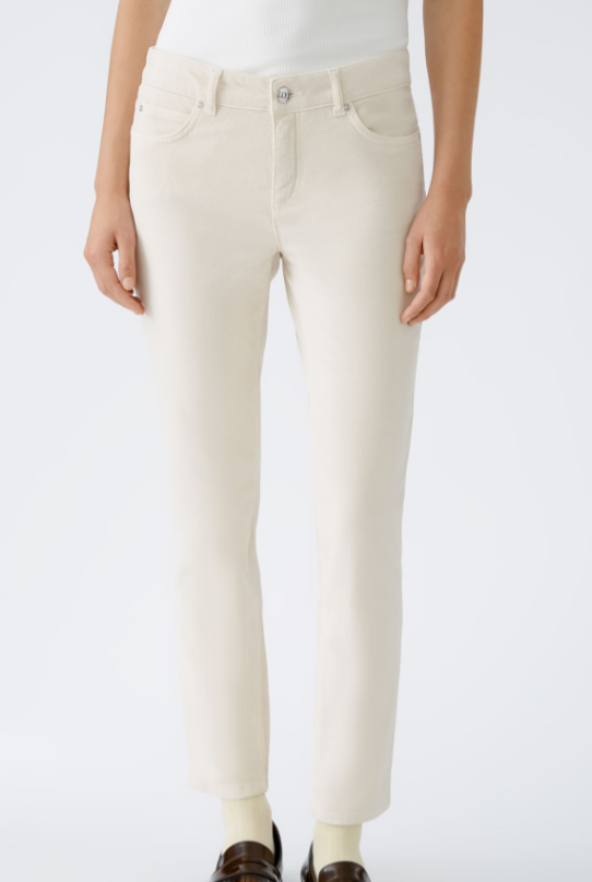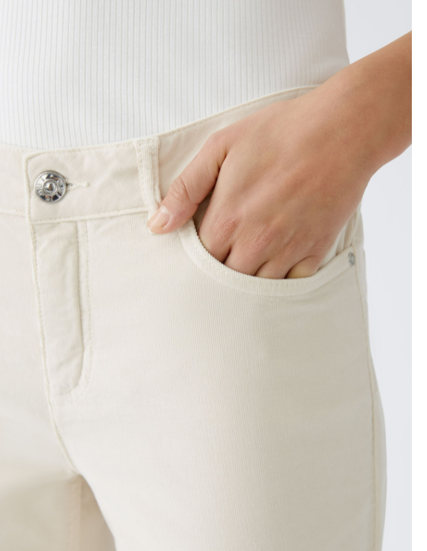 Velvety fine corduroy, super soft stretch cotton fabric. Slim fit, medium rise, slightly cropped. Zip-fly fastener. With belt loops. Classic 5-pocket trousers