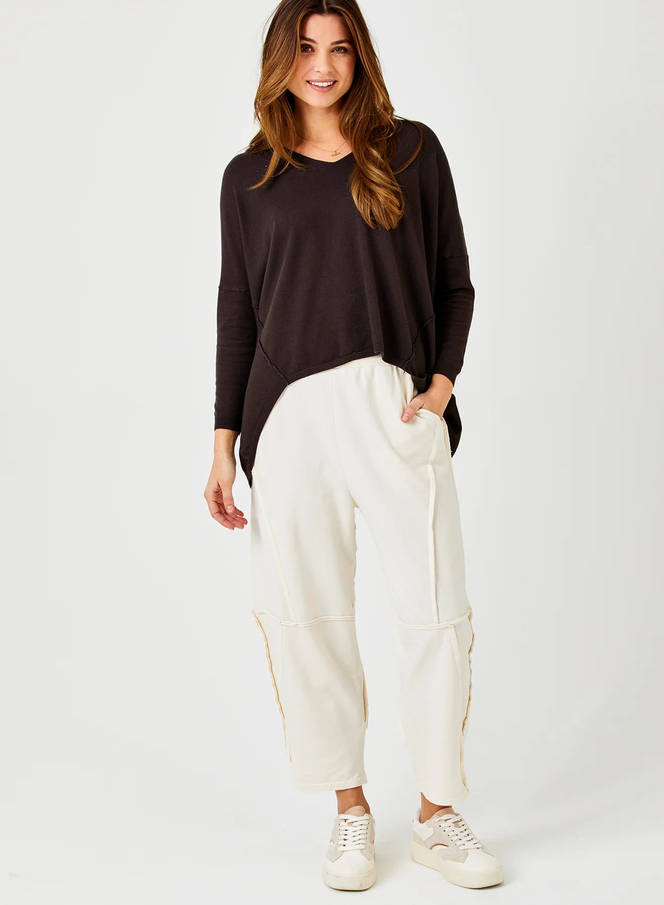 The Bria Joggers with raw edge detail look so cute and comfy, wear it with the matching sweatshirt.