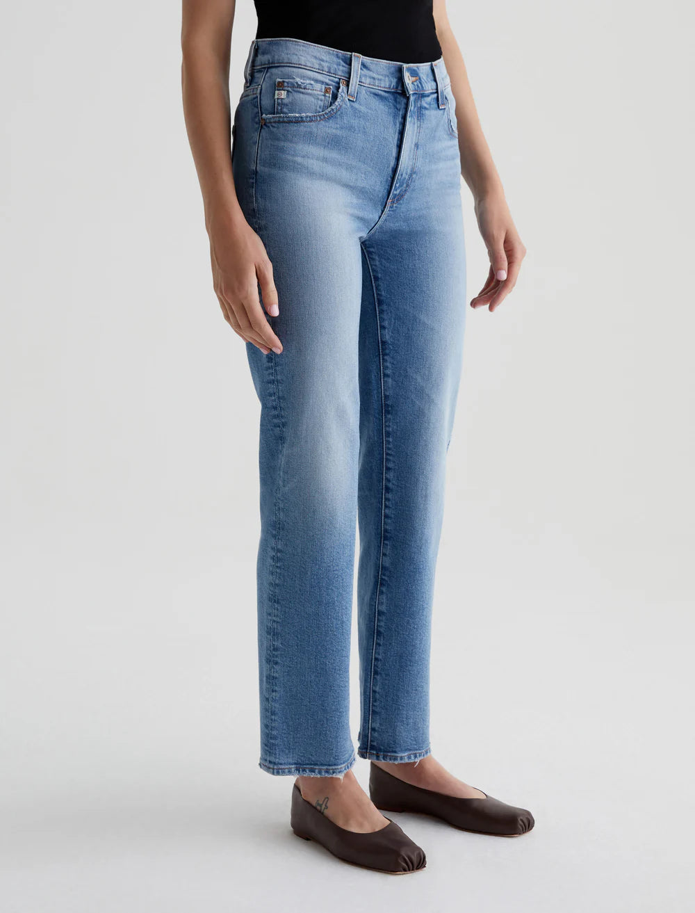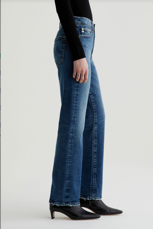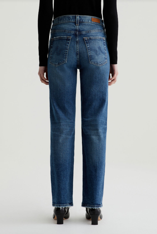 Brinley is our new mid-rise straight fit for women. The five-pocket style sits right at the natural waist and falls to a classic straight-leg silhouette. Crafted from 11.75 oz. Vintage Comfort Stretch Denim, it's done in a light blue wash that our designers custom-developed to replicate the lived-in details of authentic vintage jeans. Fading, worn edges, busted hems, and a touch of distressing near the pockets create the 18-year AG-ed™ Denim character.