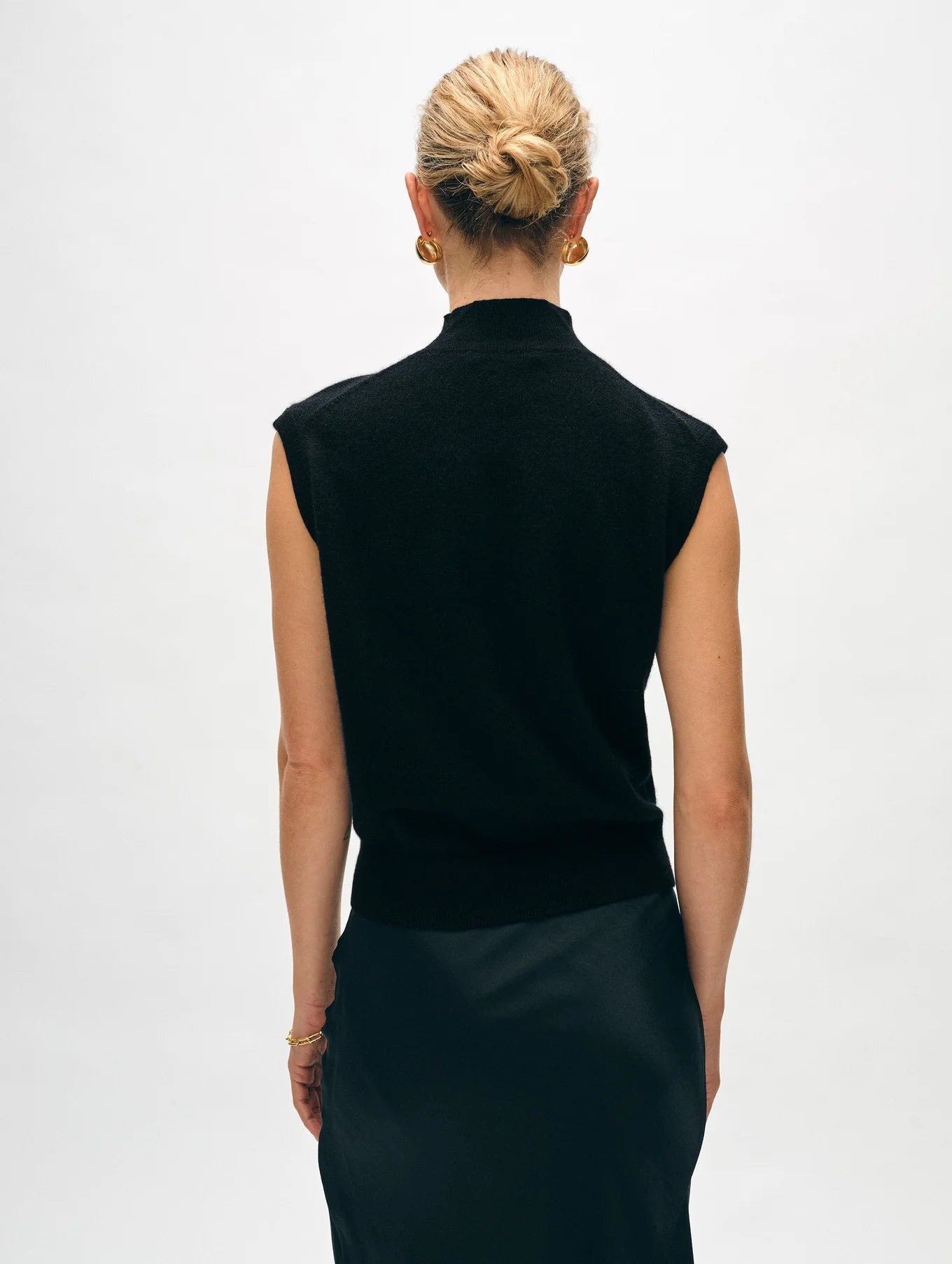 CASHMERE SLEEVELESS MOCKNECK SWEATER