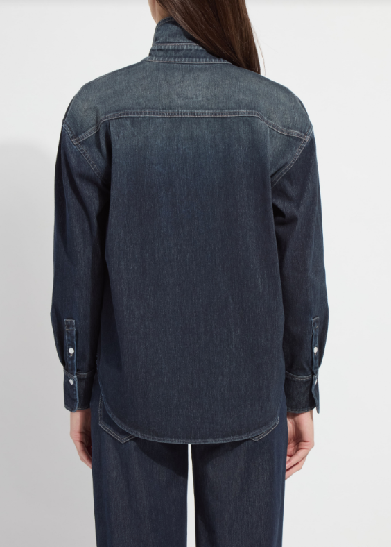 Simple and clean button front denim shacket. Wear open or closed as a shirt or jacket