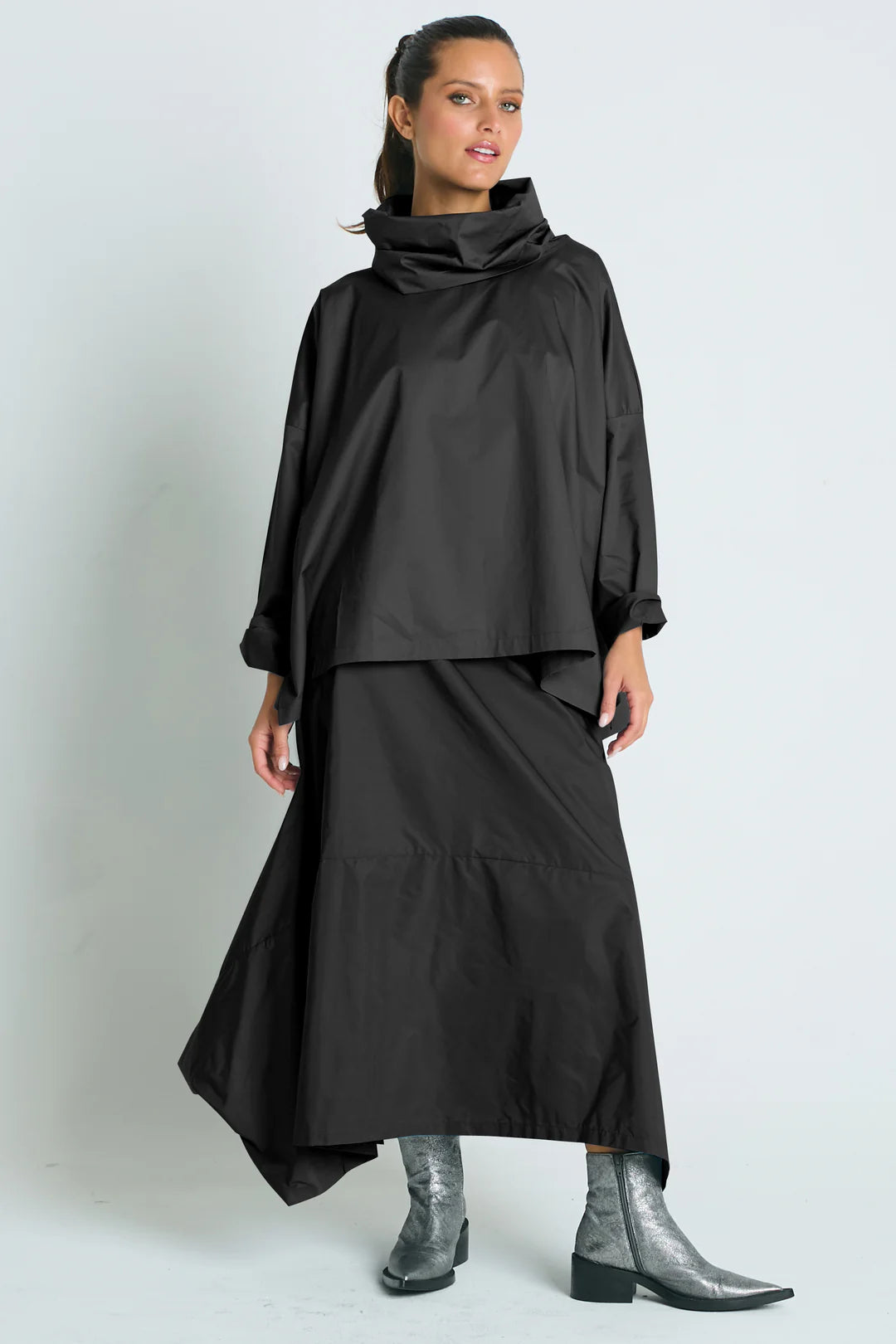 This artfully draped cowl top brings architectural ease to everyday style. Made from crisp cotton with a soft touch, it’s lightweight and breathable—structured yet unrestrictive. The relaxed silhouette is elevated by its sculptural neckline and wide sleeves that roll with intention.