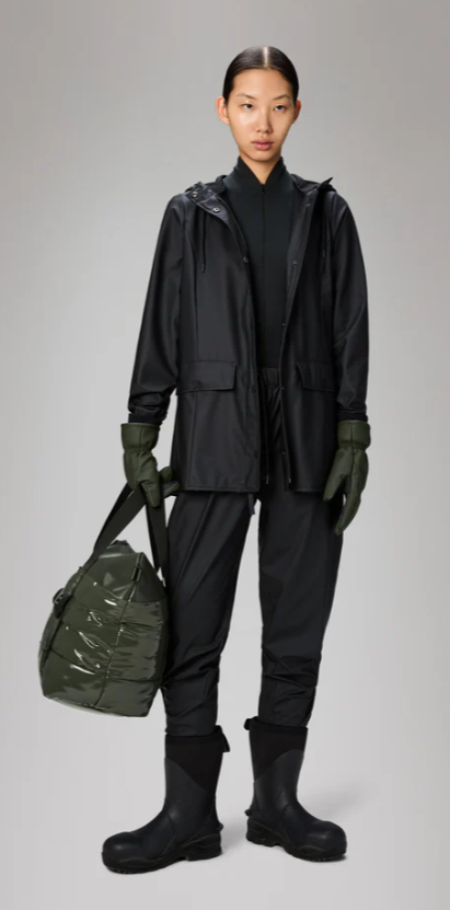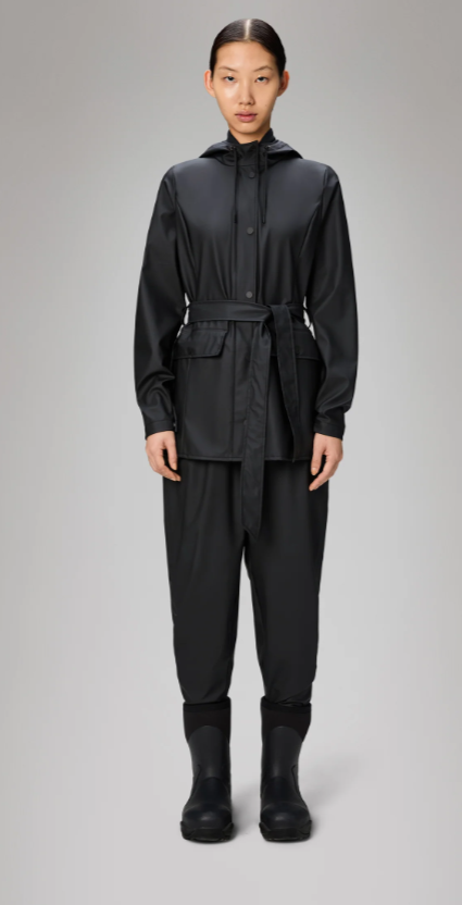 Curve Jacket is a shorter version of Rains’ Curve Long Jacket with a belt that elegantly accentuates the waist. Designed to block out water, wind and chill. This design is a clean women’s raincoat with a minimal aesthetic. The fit is figure-flattering with high functionality. Curve Jacket is a weather-ready staple designed with a hood with tie cord and zipper closure under a storm flap with snaps. The look is completed with two welt pockets placed under a pocket flap with snaps. This women’s rain jacket is cut from Rains’ signature PU fabric and features welded seams. The finish is lightweight with a smooth feel.