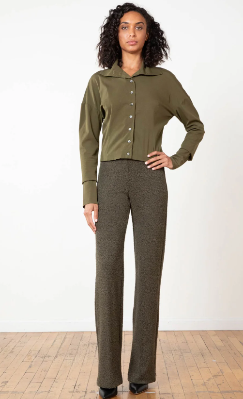 The Flavia style is a full length palazzo style pant. Palazzo pants are supremely comfortable because of their wonderfully loose cut, which allows the legs to swirl around you as you walk and gives a graceful flare to your figure.