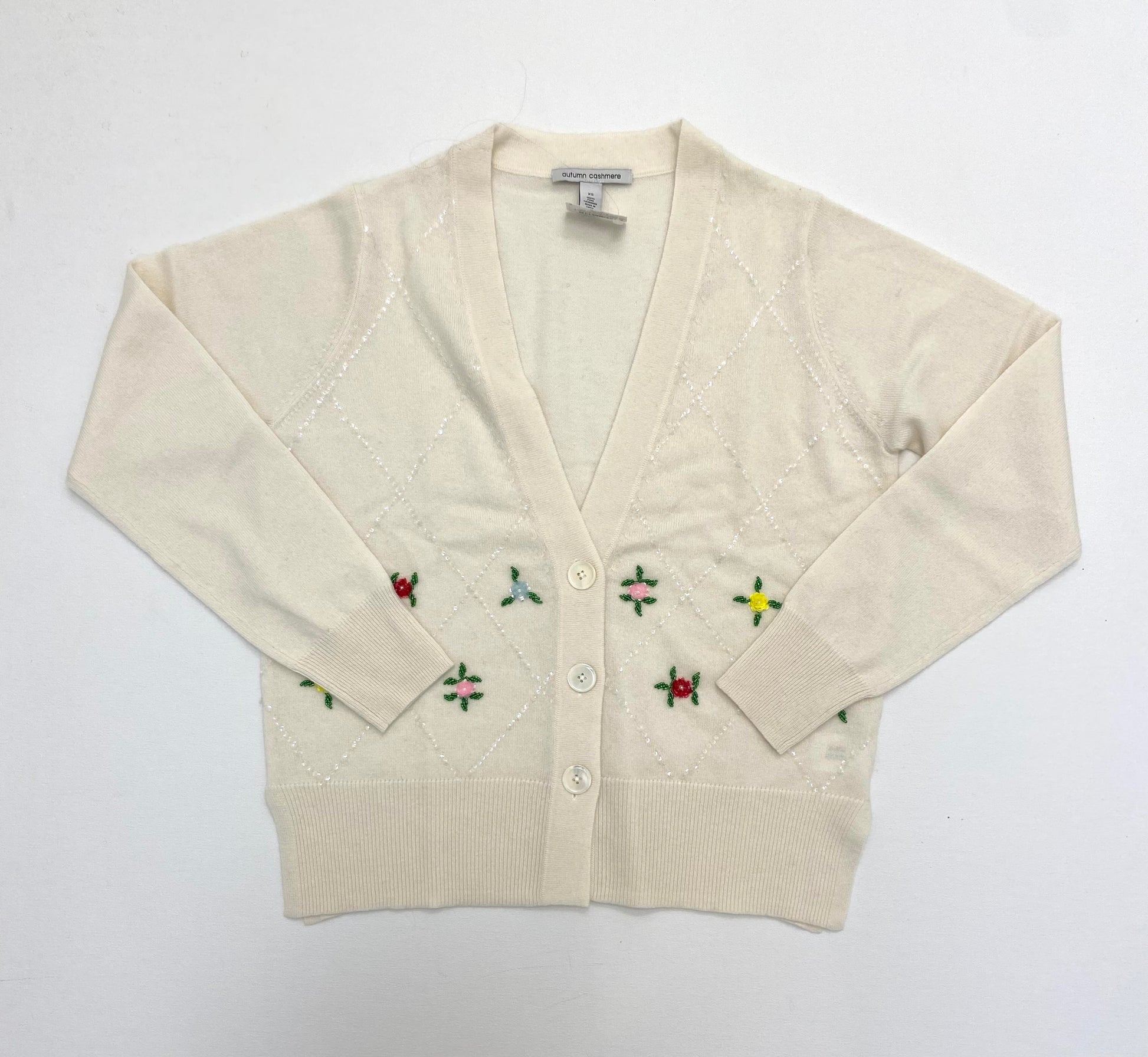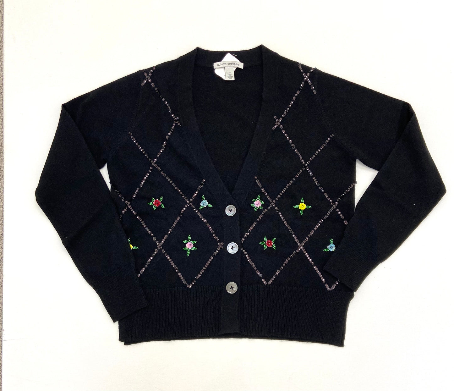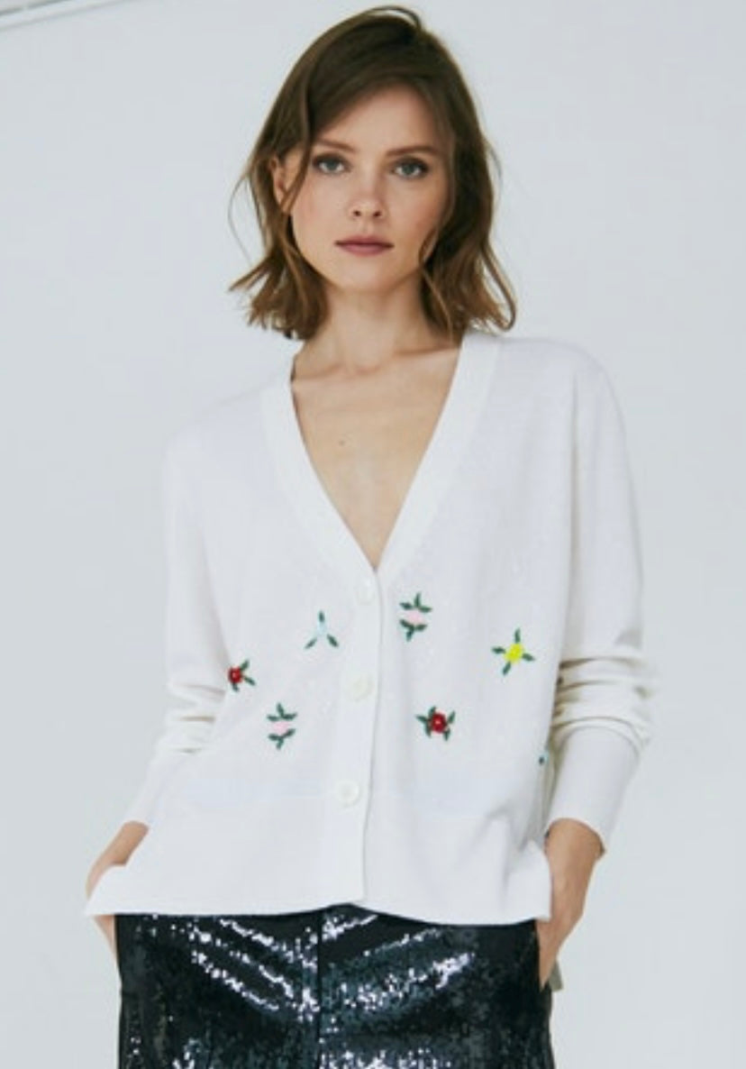 HAND BEADED DIAMOND & FLOWER V NECK CARDIGAN