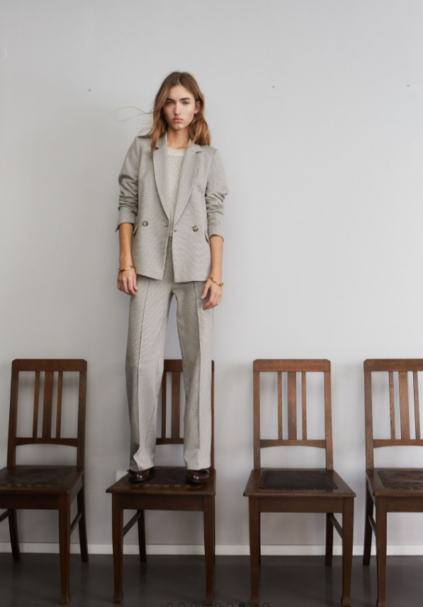 This is a fabulous small print houndstooth, elastic waist, relaxed fit trouser. Looks great on its own or with its matching blazer.