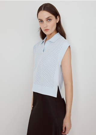 Open weave with cap sleeves, make it a vest to wear alone or put a tee underneathe. Also wear with a blazer over