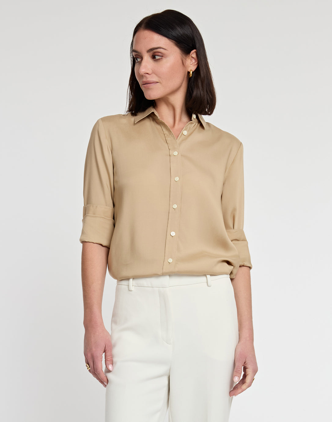 Meet Reese, our newest but classically tailored shirt. Reese will be the most versatile item in your closet. Long sleeve with buttoned cuffs, button front, shirt collar. Relaxed fit. Made of our Tencel Cotton, do not need to be ironed if machine dried.