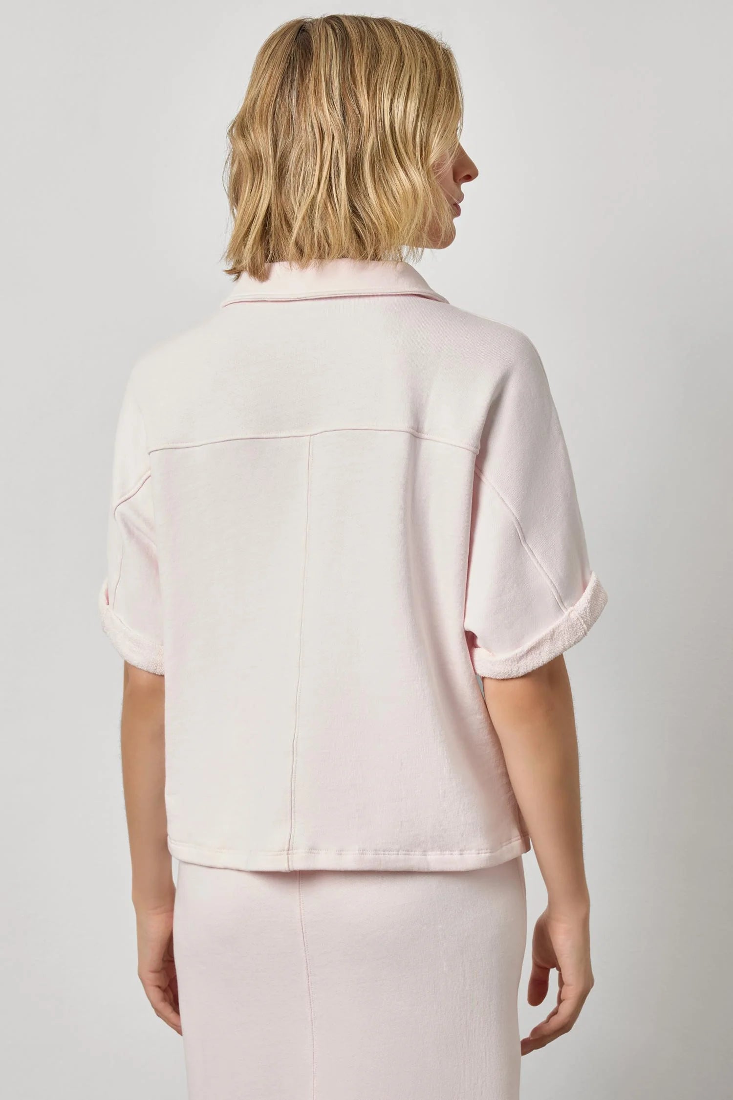 The Oversized Terry Polo is a chic and relaxed style in our soft French Terry fabric. Featuring a collar and button placket, this top has extended sleeves that create an easy, cozy look. The back yoke and side slits add subtle detailing for a modern finish. Designed for an oversized fit, you can size down if you prefer less fullness. Pair it with the coordinating French Terry bottoms for a head-to-toe look that’s comfortable yet effortlessly chic, perfect for travel or everyday wear.