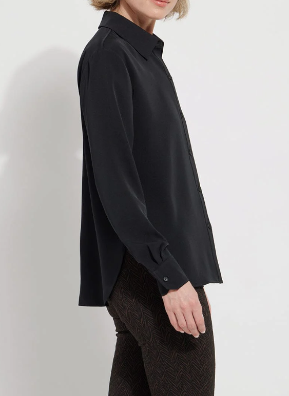 The Parker Button Down Shirt offers a slimmer fit and curved, hip-length hem that tails longer in the back than front. Made from Stretch Woven fabric, the Parker Button Down is soft and drapey. It features a shirt collar, clean cuffs and a length that is perfect for tucking into wide- and boot-leg pants.