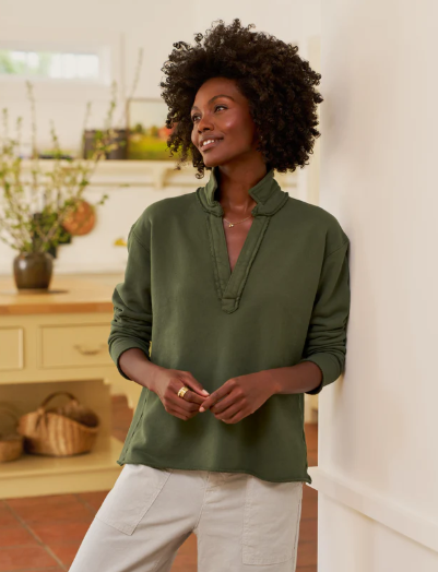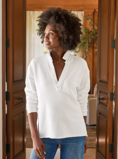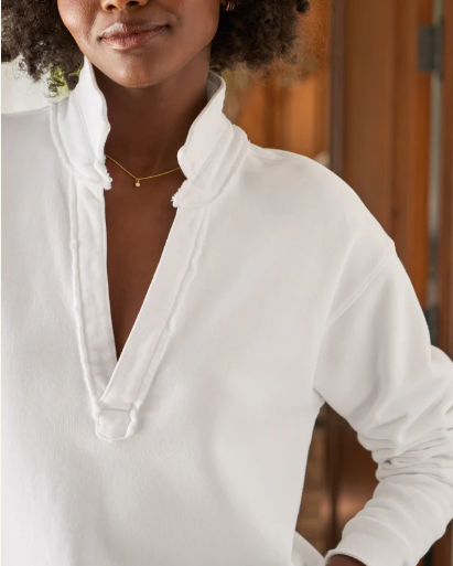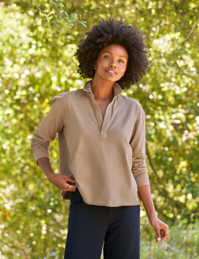Our runaway hit Popover Henley has a slight drop sleeve, sporty v-neck, and straight raw-cut hem that looks cropped without sacrificing any length or coverage. This piece takes you from running laps to lunch, from beach walks to brunch...