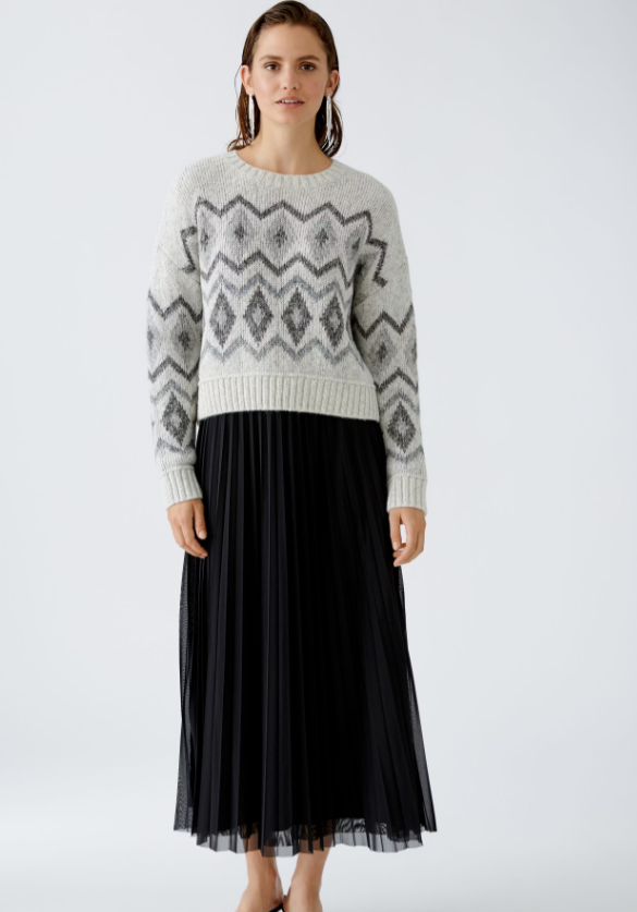 Easy-care, airy mesh fabric in pleated, plain colour. Tailored cut, maxi length. Elasticated waistband, slip-on, with shiny effect. With soft satin jersey lining. Antistatic finish
