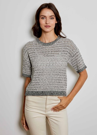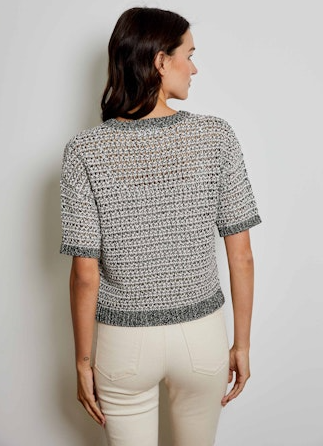 A great crewneck collar short sleeve marled sweater. So fun under a blazer or alone