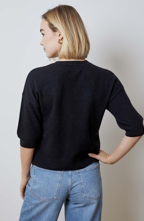 Short sleeve to the elbow with a slight puff for a fun look. A great cashmer short sleeve top for all year.