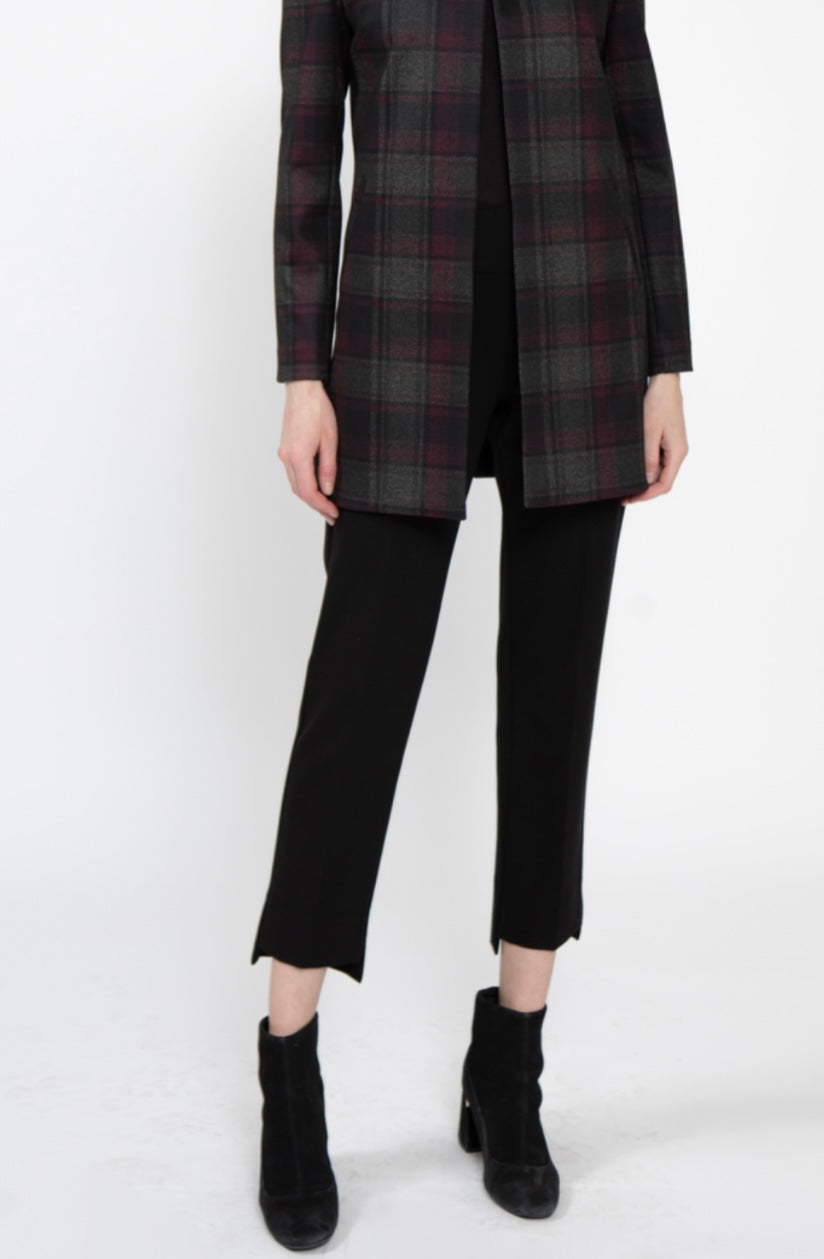 A wonderful ponte knit pant with a updated version of high low ankle.