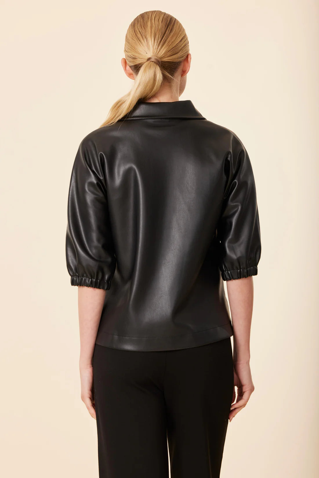 V NECK SHORT SLEEVE VEGAN LEATHER TOP